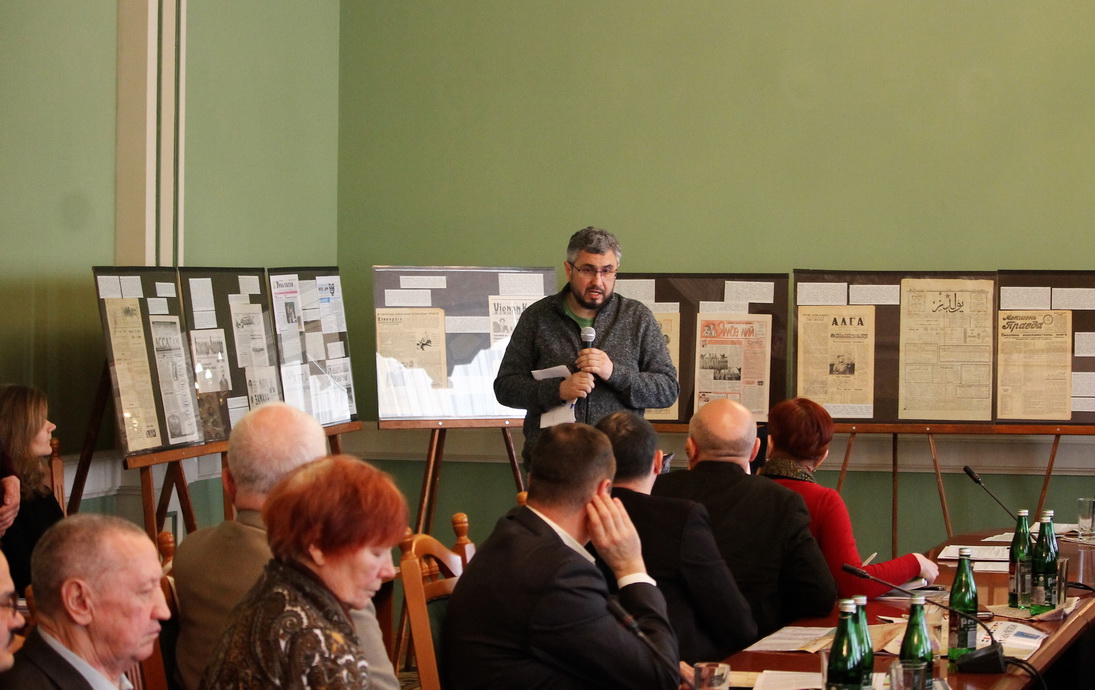 Директор Музею-архіву преси Вахтанг Кіпіані презентував присутнім виставку унікальних періодичних видань мовами народів РФ, у тому числі, малочисельних та нині зниклих. Це 21 раритетна газета латиницею, кирилицею, арабською графікою, серед яких і ті, що видавалися на території сучасної Росії ще на початку ХХ ст. Центральним експонатом виставки став примірник газети “Юлдузъ” за 1908 р. – одне з перших видань татарською мовою у Російській імперії. За словами Кіпіані, деякі автохтонні народи Росії мають лише по одному друкованому виданню власною мовою, ще й з маленьким накладом. Останнім часом чимало таких видань переходять на публікацію російською мовою, що звужує простір для використання рідної мови, каже Кіпіані.